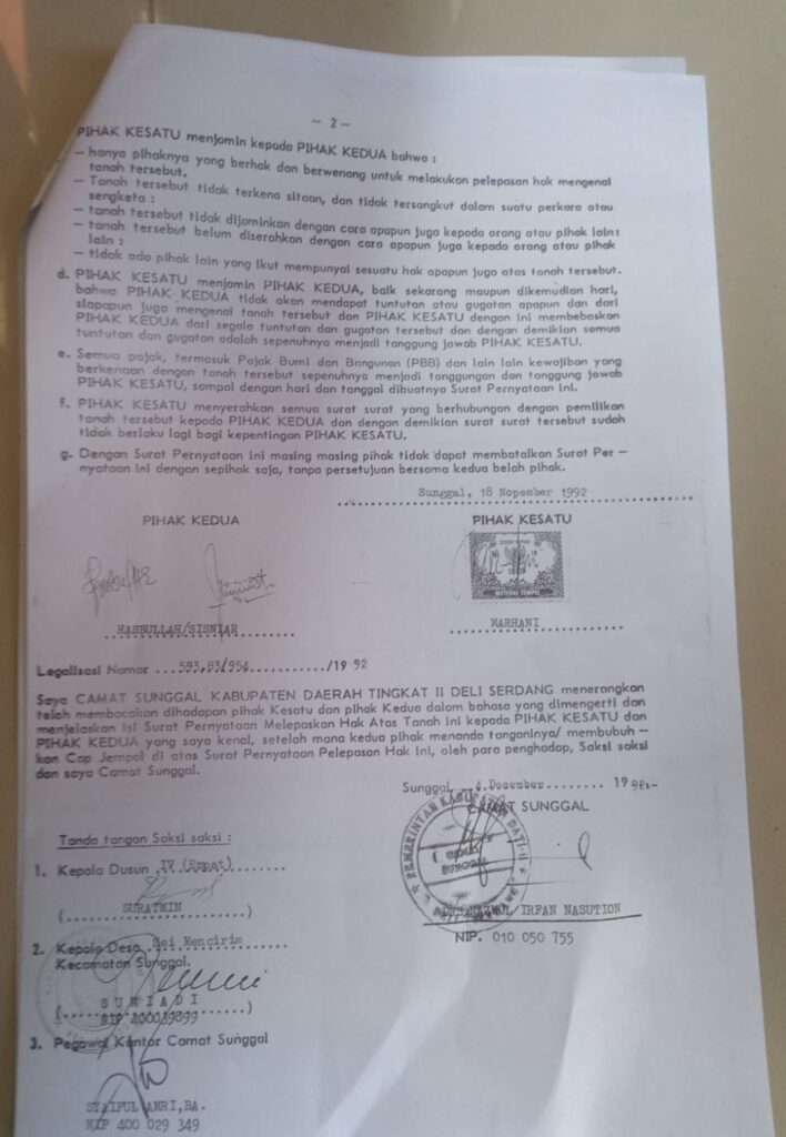 Suaraakademis.com||Sunggal — Polemik sengketa surat rumah peninggalan almarhum Hasbullah mencuat ke publik. Seorang warga bernama Sisniar, istri pertama almarhum, mengaku haknya atas rumah yang dibeli pada masa pernikahan sah tahun 1992 ditahan oleh kepala desa dan kepala dusun, dengan alasan harus dibagi kepada anak dari istri kedua almarhum.