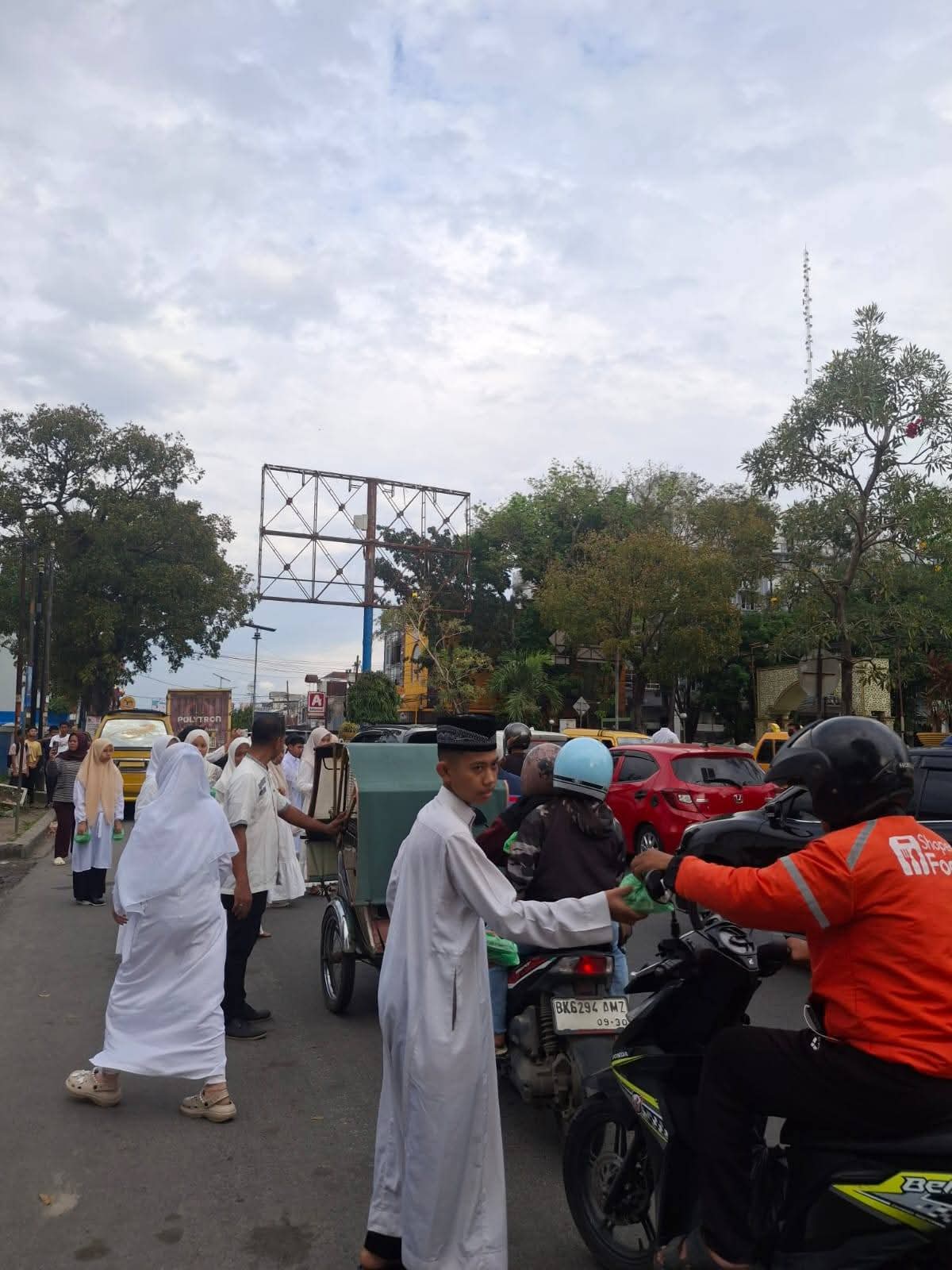 Aksi sosial tersebut melibatkan para guru, siswa, serta jajaran sekolah yang secara langsung turun membagikan takjil kepada masyarakat yang melintas menjelang waktu berbuka puasa.