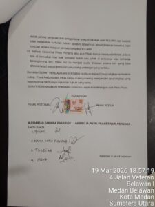 1. Pihak pertama sepakat untuk pencabutan laporan polisi Nomor : LP / B / 11 / 2026 / SPKT /Polsek Belawan/Polres Pelabuhan Belawan/POLDA SUMATERA UTARA tertanggal 23 Februari 2026 atas dugaan tindak pidana pencemaran nama baik yang dilakukan oleh pihak kedua dan berjanji tidak melakukan tuntutan hukum apapun setelah dilakukannya perdamaian (restoratif justice) tersebut baik secara pidana maupun perdata terhadap pihak kedua.